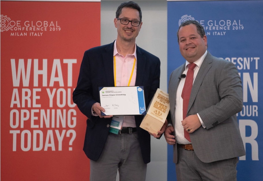 For his exceptional contributions to advancing open education around the world, James Glapa-Grossklag, Dean of Learning Resources at College of the Canyons, received the President's Award for Excellence at the 2019 Open Education Global Conference.