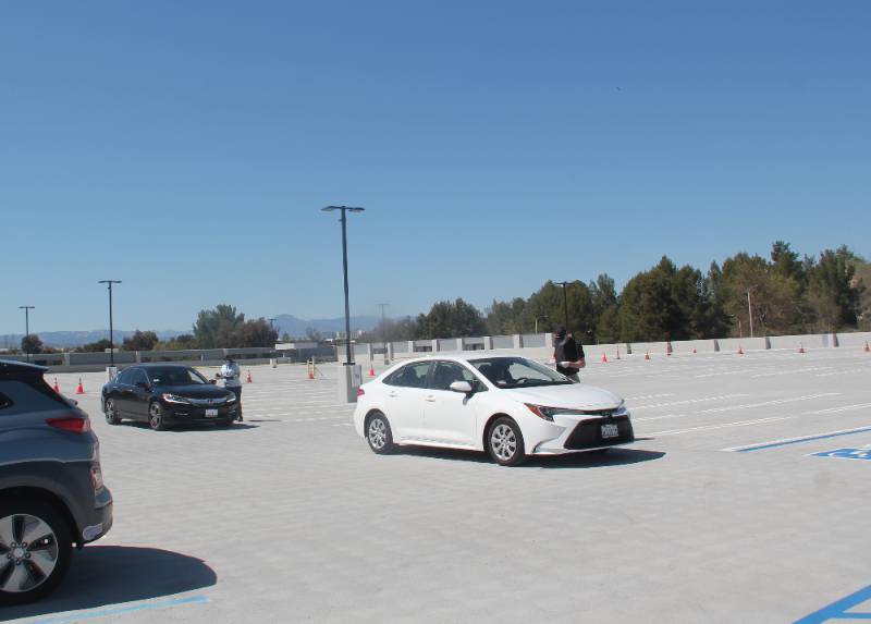 The laptops were distributed in a contactless manner-students were given directions to drive to the very top level of the college's new parking structure where an administrator checked their identification and deposited a laptop in the car's trunk or in the backseat.