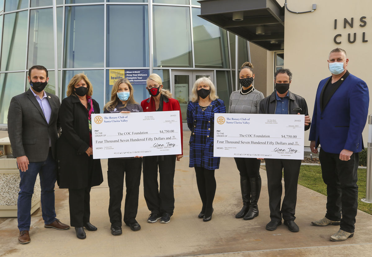 College of the Canyons has received a $9500 donation from the Rotary Club of Santa Clarita, which will be divided equally to establish a scholarship fund for culinary arts students and the college's Basic Needs Center (BaNC).