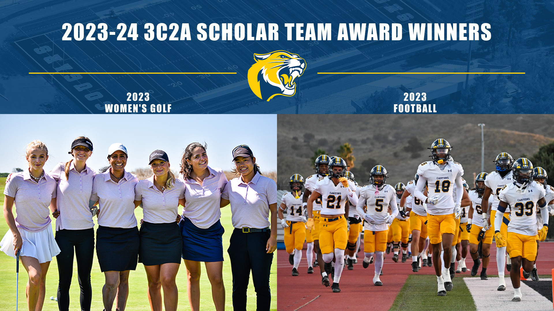 The 2023 state championship College of the Canyons women's golf team and the 2023 Cougars football team have both been named 2023-24 California Community College Athletic Association (3C2A) Scholar Team Award winners.